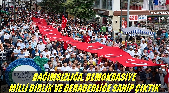 Altınordu Belediyesi önünde başlayan ve yoğun katılımla gerçekleşen “Milli Birlik Yürüyüşü”, İsmetpaşa caddesi ve Süleyman Felek caddesini takiben 15 Temmuz Demokrasi Meydanı’nda son buldu.