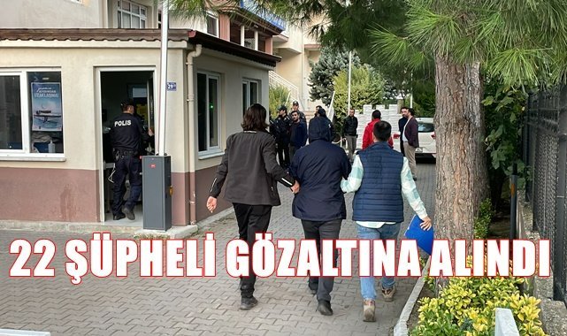 Emniyet ekiplerince şüphelilerden 22'si gözaltına alınarak Amasra İlçe Emniyet Müdürlüğüne getirildi.