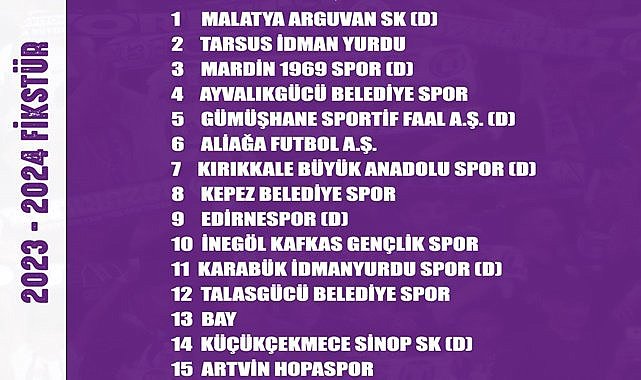 1. Grupta yer alan 52 Orduspor ilk hafta depasmanda karşılaşacak.TFF 3. Lig 9 ve 10 Eylül 2023 tarihlerinde oynanacak maçlarla başlayacak ve ligin ilk yarısı 16 ve 17 Aralık tarihlerinde oynanacak olan 15 hafta müsabakaları ile sona erecek. Ligin ikinci yarısı 20 ve 21 Ocak tarihlerinde oynanacak 16. hafta müsabakaları ile başlayacak ve normal sezon 27 Nisan 2024 tarihinde sona erecek. Ardından play-off müsabakaları oynanacak.