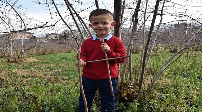6 yaşındaki Mustafa fındık dalı ile fenomen oldu