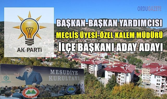 Ordu Mesudiye’de AK Parti’den belediye başkanlığı için 7 aday adayı bulunuyor. Belediye Başkanı, Belediye Başkan Yardımcısı, Meclis Üyesi, Özel Kalem Müdürü, İlçe Başkanı aday adayı oldu.