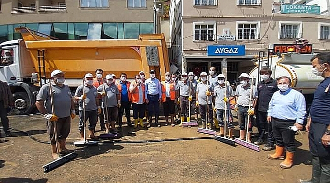 Altınordu Belediyesi, sel afetinin izlerinin silinmesi için yoğun bir çalışma yürütülen Dereli ilçesine iş makinesinden Mobil sağlık aracına, Arazöz’den Vidanjöre birçok ekip ve ekipmanın yanında 50 personel ile birlikte gıda ve hijyen paketi desteğinde bulundu.