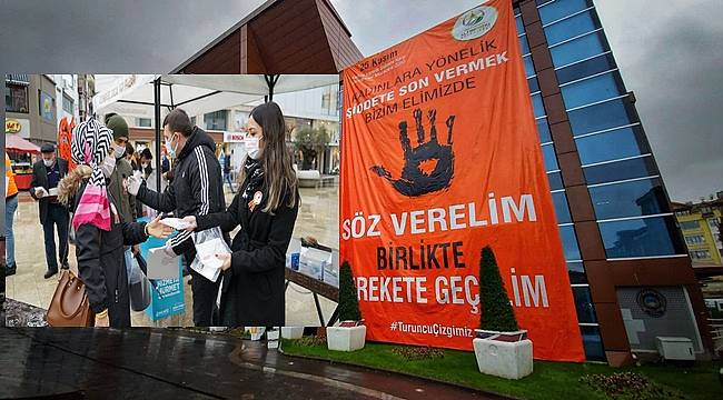 Altınordu Belediyesi tarafından belediye hizmet binasına asılan “Kadınlara şiddete son vermek bizim elimizde. Söz verelim birlikte harekete geçelim” yazılı dev pankart ile topluma duyarlılık çağrı yapıldı.