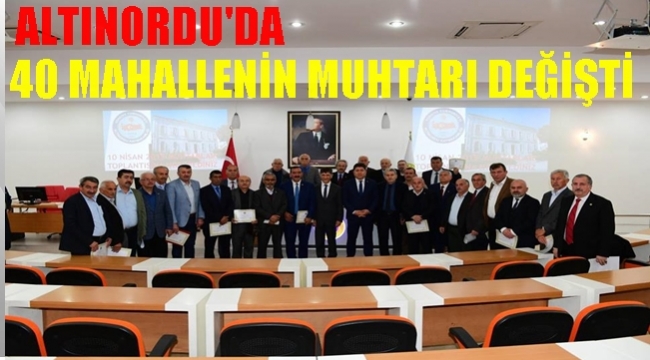 Altınordu İlçesi’nde 31 Mart’ta yapılan yerel seçimlerde 92 Mahallinin 40’ının muhtarı değişti.52 muhtar koltuğunu korumayı başardı.92 Mahallenin 3’ünde bayan muhtar görev yapıyor.