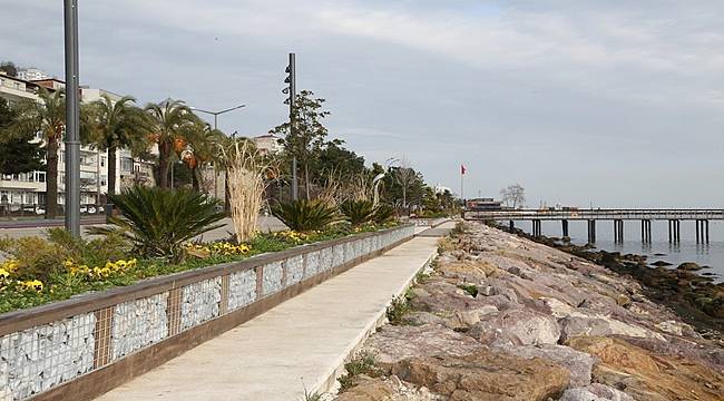 Daha önce yapılan düzenleme ve peyzaj projesiyle rıhtım ve Ayışığı Otoparkı arasında kalan kısımda değişim ve dönüşüm gerçekleştiren Büyükşehir Belediyesi, 700 metrelik sahil bandında 427 metre alanı gabion saksı çalışmasıyla yeşillendirdi.