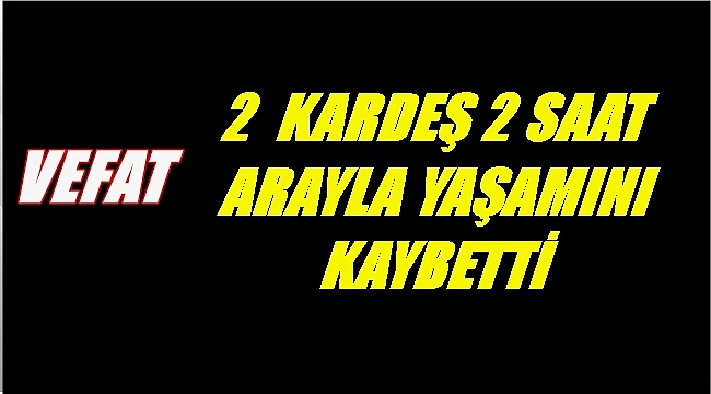 İki kardeş iki saat arayla yaşamını kaybetti.