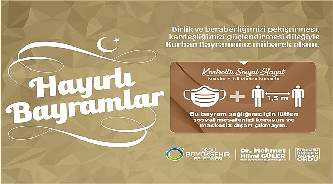 Bu duygu ve düşüncelerle, Kurban Bayramı'nı başta ülkemiz olmak üzere bütün dünyada barış ve kardeşliğe vesile olmasını dileyerek en içten duygularımla kutluyor, sağlık, mutluluk, huzur ve güven içerisinde, ailenizle birlikte bir bayram geçirmenizi içtenlikle diliyor, sevgi ve saygılarımı sunuyorum.