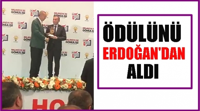 Yusuf Yalçuva’ya ödülünü Cumhurbaşkanı ve Ak Parti Genel Başkanı Recep Tayyip Erdoğan’ın elinden aldı.