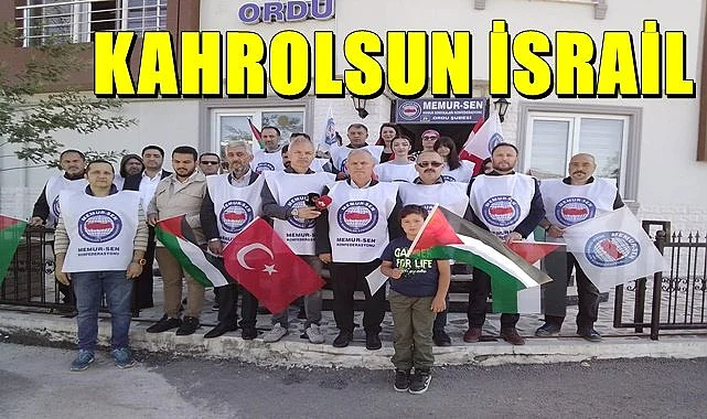 Bem Bir Sen’den Filistin’e destek. Memur Sen’e bağlı Bem Bir Sen Ordu Şube Başkanı Rahmi Çakar, sendika binası önünde basın açıklaması yaptı.