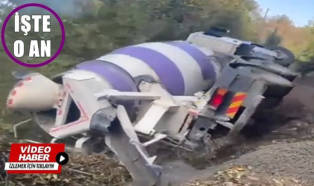 Beton mikserinin devrilme anı, çevredeki vatandaş tarafından cep telefonuyla görüntülendi.