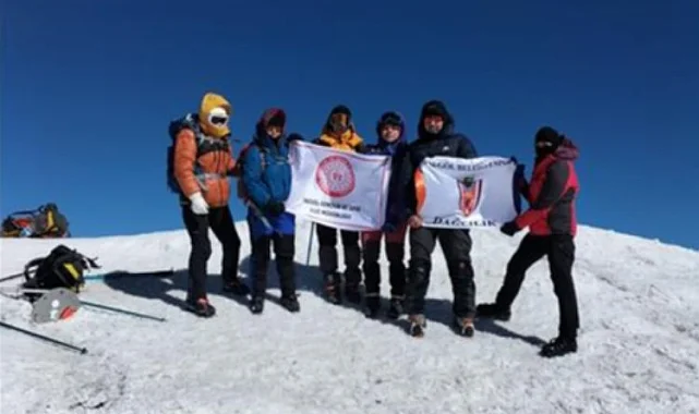 Sabah saat 7.30’da 5 bin 137 metrede zirveye ulaşan ekip, tişörtlerle çıktığı yolculuğu mont ve kışlık kıyafetlerle tamamladı.
