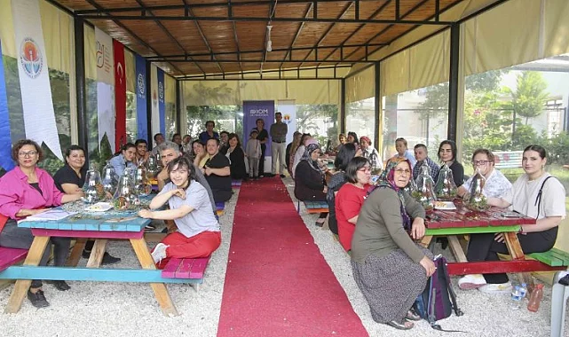 Atölye masaları etrafında engelli bireyler ve aileleri kendi tasarımları olan teraryumları el emekleri ile yaparak gün sonunda birbirlerine hediye ettiler.