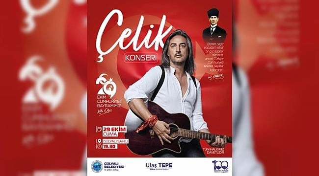 Gülyalı Belediye Başkanı Ulaş Tepe, “Gerçekleştirdiğimiz konserlerle Ordu'da kültür sanat etkinliklerinin yeniden canlanmasını sağladık. Cumhuriyet Bayramı'nda Türk pop müziğinin usta sesi Çelik, sevilen şarkılarıyla dinleyicilerine unutulmaz bir gece yaşatacak.” Dedi.