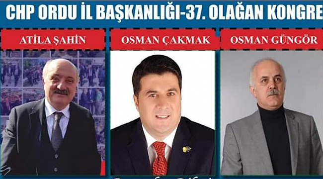 Cumhuriyet Halk Partisi Ordu örgütü il kongresi hazırlıklarını tamamladı. Pazar günü yapılacak olan kongrede eski il başkanları Osman Güngör ve Av. Atila Şahin ile Osman Çakmak adaylığını açıkladı.