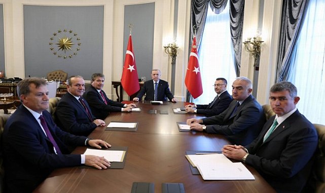 ANKARA (İGFA) - İletişim Başkanlığı'ndan aktarılan habere göre, Beştepe'deki kabulde Cumhurbaşkanı Yardımcısı Fuat Oktay, Kültür ve Turizm Bakanı Mehmet Nuri Ersoy, KKTC Başbakan Yardımcısı, Turizm, Kültür, Gençlik ve Çevre Bakanı Fikri Ataoğlu ile Türkiye'nin Lefkoşa Büyükelçisi Metin Feyzioğlu da yer aldı.