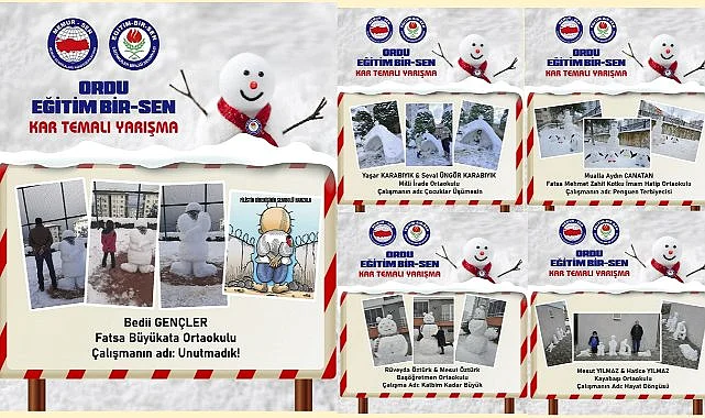 Eğitim-Bir-Sen Ordu Şubesi tarafından üyeler ve ailelerine yönelik düzenlenen "En Güzel Kardan Adam Yapma Yarışması" büyük bir coşkuyla tamamlandı. Yarışma, katılımcılara aileleriyle birlikte keyifli vakit geçirme fırsatı sunarken, aynı zamanda hayal gücünü ve el becerilerini ortaya koyma olanağı sağladı.
