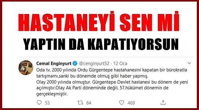 Videonun yayınlanmasından sonra Enginyurt, Twitter'dan bir paylaşımda bulundu. Enginyurt, açıklamasında, "Olay 2000 yılında olmuştur. Gürgentepe Devlet Hastanesi bu dönemde yeni açılmıştır. Olay AK Parti döneminde değil, 57. hükümet döneminde gerçekleşmiştir" dedi.