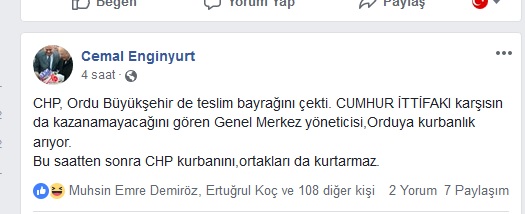 CHP, Ordu Büyükşehir de teslim bayrağını çekti. CUMHUR İTTİFAKI karşısın da kazanamayacağını gören Genel Merkez yöneticisi, Ordu’ya kurbanlık arıyor.
