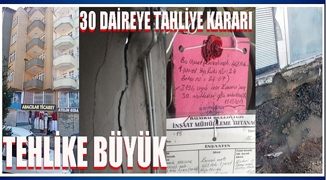 Kumru’da bitişik nizamla yapılan 3 binada oluşan çatlaklar nedeniyle binalar belediye tarafından mühürlenirken 30 daire ve 6 iş yeri için tahliye kararı verildi. Daireleri boşaltma kararı verilen 130 kişi zor durumda kaldı.