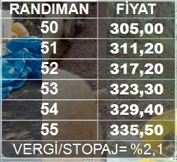Son üç günde yaşanan 30-40 TL’lik düşüş üreticilerin dikkatini çekerken, randımana göre fiyatlar şu şekilde oluştu: