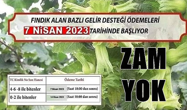 Fındık Alan bazlı Gelir Desteği ödemeleri 7 Nisan Cuma günü başlıyor.