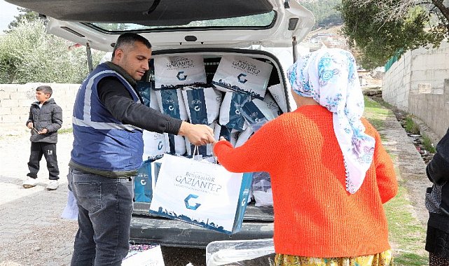 GAZİANTEP (İGFA) - Gaziantep Büyükşehir Belediyesi Kadın Aile ve Sosyal Hizmetler Daire Başkanlığı tarafından depremde hasar alan ilçelerde hayatın daha hızlı normalleşmesi ve ihtiyaçların karşılanması için yaptığı çalışmalarla vatandaşlara gıda ürünü dağıttı.
