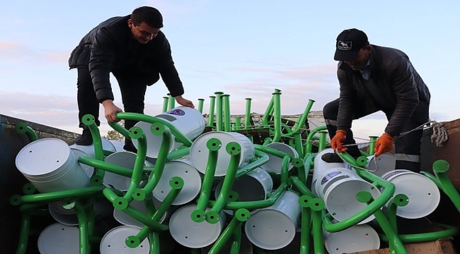 Daha önce İstanbul Büyükşehir Belediyesi’nden çöp bidonları alan Gülyalı Belediyesi’ne bu kez İç Anadolu Belediyeler Birliği tarafından bahçe tip çöp kovası ve bank gönderdi.
