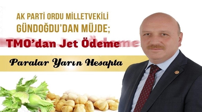 AK Parti Ordu Milletvekili Metin Gündoğdu’dan fındık üreticilerine bir müjde daha geldi. Gündoğdu TMO’ya fındık veren üreticilerin ödemelerinin yarın yapılacağını açıkladı.