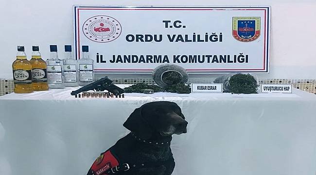Ordu İl Jandarma Komutanlığınca uyuşturucu ile mücadele kapsamında yapılan istihbari çalışmalar sonucu Fatsa İlçesindeyapılan operasyonda; (2) şüpheli şahsın işyeri, ev ve eklentisinde yapılan aramada (530) gram kubar esrar, (7) adet extacy hap, (6) litre sahte/kaçak alkollü içecek, (1) adet ruhsatsız tabanca, (13) adet tabanca fişeği ele geçirilmiştir..