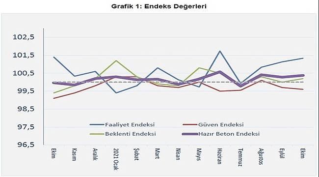 Söz konusu endekslerin oluşturulmasına esas teşkil eden anket ile firmalara 8 soru soruluyor. Her bir endeksin değeri 100’ün altında ya da üstünde olmasına bağlı olarak yorumlanıyor. 100’ün üzerinde olması durumunda önceki aya ait faaliyetin ya da gelecek döneme ilişkin beklentinin olumlu yönde geliştiği yorumu yapılıyor. Türkiye genelinde her ay hazır beton üreticileri ile gerçekleştirilen çalışmada 3 farklı endeks türetiliyor. Hazır Beton Faaliyet Endeksi ile hazır beton firmalarının geçmiş bir aylık faaliyetlerinin sonuçları, Hazır Beton Güven Endeksi ile hazır beton sektöründe faaliyet gösteren teşebbüslerin, ekonomi ve sektöre yönelik duydukları güven seviyesi, Hazır Beton Beklenti Endeksi ile hazır beton firmalarının önümüzdeki üç aylık dönemde faaliyetlerinin hangi seviyede olacağına ilişkin beklentiler hakkında bilgi ediniliyor. Hazır Beton Endeksi ile endekslerin tümünü içeren bileşik endeks elde ediliyor.