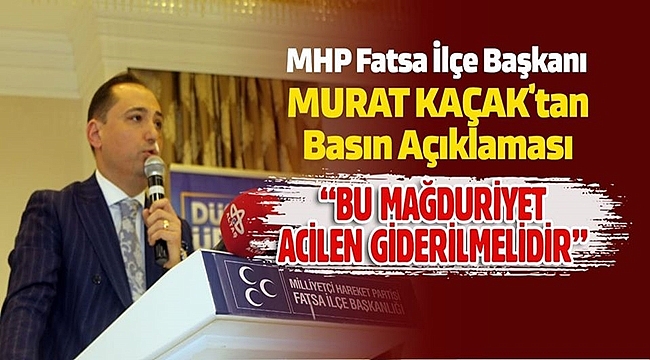 MHP Fatsa İlçe Başkanı Kaçak, "Ekonomik anlamda zor günlerden geçen esnaf ve vatandaşlarımızın durumu ve işsizlik meselesi ile hâllenirken, yeni bir şikâyet konusu ile sık sık karşılaşır olmaya başladık. Meselenin binlerce kişiyi kapsadığını fark edince, olaya bir tepki koymamız gerektiğinden hareketle açıklama yapma gereğini duymuş bulunmaktayım" dedi.
