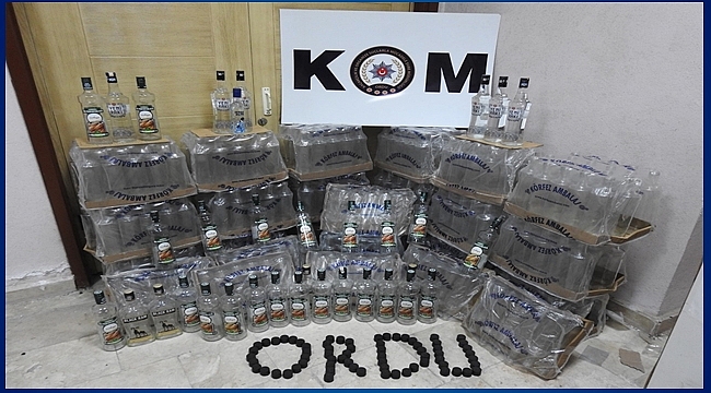 Ordu İl Emniyet Müdürlüğü Kaçakçılık ve Organize Suçlarla Mücadele Şube Müdürlüğü tarafından yeni yıl öncesinde merdiven altı tabir edilen yerlerde sahte içki üreten kişilerin tespitine yönelik yapılan çalışmalar neticesinde, durdurulan bir araç içerisinde 13 adet sahte içki yakalanmış, soruşturmanın derinleştirilmesiyle şahsın annesinin ikametinde sahte içki imalatı yaptığının tespit edilmesi üzerine Kaçakçılık ve Organize Suçlarla Mücadele Şube Müdürlüğü ekipleri tarafından imalathanede yapılan aramada imalata hazırlanan 600 adet şişe, kapak ve içki imalatında kullanılan malzeme ele geçirilmiştir.