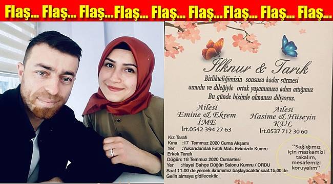 Kumru’da berberlik yapan Tevfik Kul 18 Temmuz’da İlknur İme ile evlendi. Çift düğünlerinde koronaya dikkat çekmek için davetiyelerine not bile yazdı.