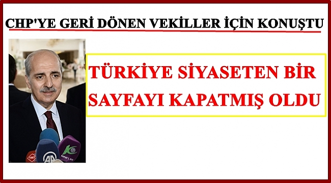 CHP'li 15 milletvekilin yine kapalı kapı ardında pazarlık gereği başka partiye gönderilesinin yine “şemsiye partisi”ni hatırlattığını vurgulayan Kurtulmuş, “Doğru olanı yapmışlar. Millet onlara CHP milletvekili olsun diye oy vermiştir. Şimdi yeniden milletin verdiği iradeyi kuşanıyorlar ve parlamentoda vakit fazla kalmadı ama tekrar asli görevlerine dönüyorlar. Hayırlı uğurlu olsun, doğrusu budur. Türkiye böylece siyaseten, böyle Ali Cengiz oyunlarından birisiyle karşılaştığı bir sayfayı da kapatmış oldu.” ifadesini kullandı.
