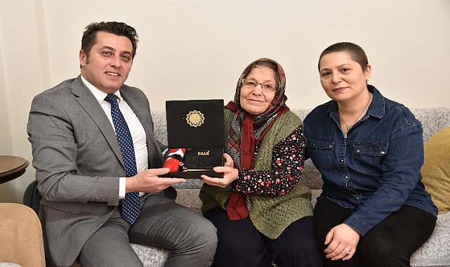 MANİSA (İGFA) - Manisa Büyükşehir Belediyesi Sosyal Hizmetler Dairesi Başkanı Gökhan Aslan, 24 Ocak 1990 tarihinde önleme görevi esnasında uçağının Diyarbakır Havaalanının kuzeyine düşmesi sonucu şehit olan Hava Pilot Üsteğmen Hüseyin Cahit Ekin’in hayattaki tek yakını olan teyzesi Ayşe Ekin’i evinde ziyaret etti.