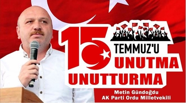 AK Parti Ordu Milletvekili Metin Gündoğdu, 15 Temmuz’un yıldönümü vesilesiyle bir mesaj yayınladı. Gündoğdu Mesajında “15 Temmuz gecesi hainlerin hedefi tüm Türkiye idi. Malazgirt’te, Çanakkale’de destan yazan aziz milletimizin kahramanlığı, 15 Temmuz gecesi memleketimizi kurtardı.” ifadelerini kullandı.
