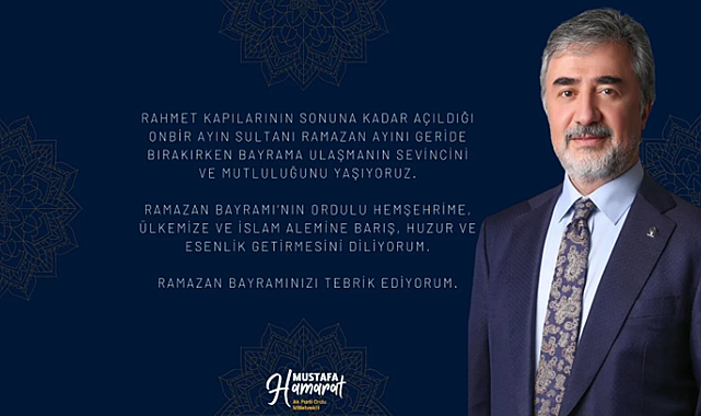 AK Parti Ordu Milletvekili Av. Mustafa Hamarat Ramazan Bayramı dolayısıyla yayınladığı mesajında birlik, beraberlik ve kardeşliğe vurgu yaparak “Ramazan ayının manevi atmosferinden aldığımız güçle, bayram coşkusunu hep birlikte yaşayalım” dedi.