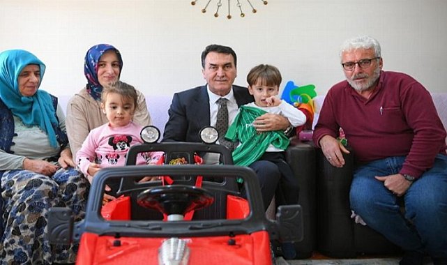 Evdeki çocuklara akülü arabanın yanı sıra forma ve çeşitli hediyeler veren Başkan Dündar’a Baba Sedat Kavsut ve yakınları teşekkür etti.