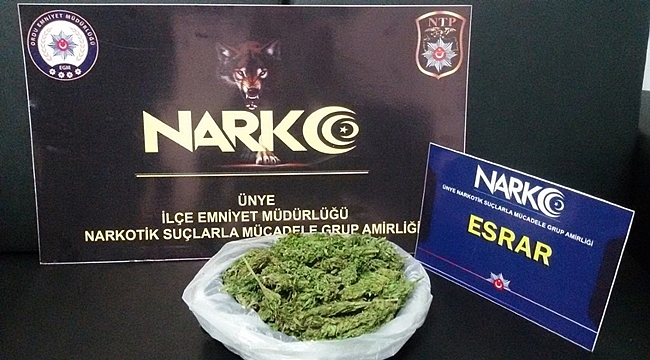 2. 27.04.2020 tarihinde Ünye Narkotik Suçlarla Mücadele Grup Amirliği görevlilerince şüphe üzerine durdurulan bir araçta yapılan aramada toplamda 63 gram esrar maddesi ele geçirilmiş, şüpheli hakkında uyuşturucu madde kullanmaktan adli işlem yapılmıştır.