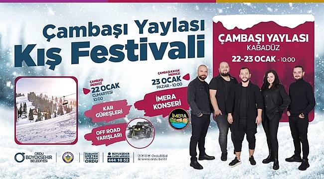 Bu kapsamda Ordu Büyükşehir Belediyesi ile Kabadüz Belediyesinin organize ettiği 16’ncı Çambaşı Kış Festivali, düzenlenecek olan birçok etkinlikle vatandaşların ilgisine sunulacak. Dolu dolu geçecek festivalde kar heykel çalıştayı, köy seyirlik oyunları, halk oyunları gösterisi, kar güreşi, off-road yarışları, amatör kızak yarışları, kayak yarışları, tulum ve kemençe dinletisi, snowboard yarışları, mahalli sanatçılar konseri, Kent Orkestrası ve İMERA Grubu konseri ile Ordulu vatandaşlar keyifli anlar yaşayacak. Festival süresince ayrıca çocuklar için özel oluşturulan alanda animasyon gösterileri de yer alacak.