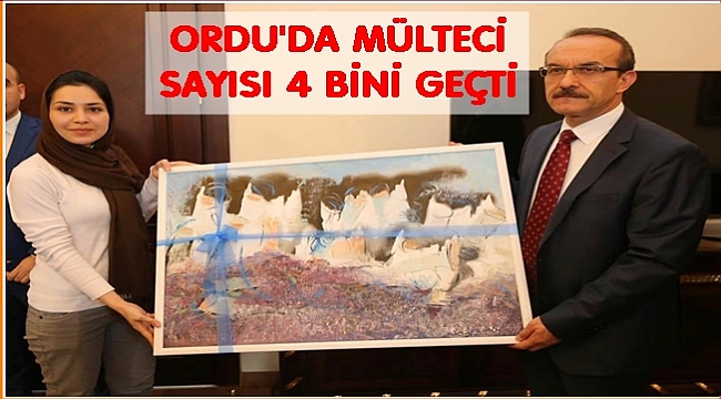 Ziyarette, Ordu’da yaşayan sığınmacılardan Iraklı Susan Falah Abbas, kendi yaptığı yağlı boya tabloyu Vali Seddar Yavuz’a hediye etti.