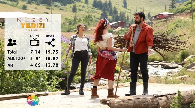 Çekimleri Ordu’da gerçekleşen Süreç Film’in, Show TV’de severek izlenen dizisi Kuzey Yıldızı İlk Aşk, dün akşam ekrana gelen bölümündeki heyecan ve eğlence dolu sahneleriyle izleyenleri ekran başına kilitledi. ABC1’de yüzde 5.91 rating ve yüzde 16.87 izlenme payı, Total’da 7.14 rating ve yüzde 19.75 izlenme payıyla birinci olan Kuzey Yıldız’ı İlk Aşk, AB’de ise yüzde 4.89 rating ve 13.78 izlenme payı elde etti. Dizinin heyecanla beklenen yeni bölümünün başlamasıyla birlikte izleyiciler #KuzeyYıldızıİlkAşk etiketi ile Twitter’da yorumlarını paylaştı. #KuzeyYıldızıİlkAşk etiketi Twitter'ın Türkiye gündeminde 4 saat 30 dakika TT listesinde kaldı.