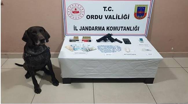 Ordu İl Jandarma Komutanlığınca uyuşturucu madde ile mücadele kapsamında yapılan titiz çalışmalar neticesinde, (2) şüpheli şahsın üstleri ile aracında, ev ve eklentilerinde yapılan aramalarda (300) adet extacy hap, (30) gram metamfetamin, (25) gram toz esrar, (1) adet ruhsatsız tabanca, (74) adet tabanca fişeği, (1) adet sahte 100 dolar, (4) adet sahte 100 TL (1) adet sahte 50 TL , ( 1) adet hasas terazi, (1) adet payp (metamfetamin uyuşturucu kullanma aparatı) ele geçirilmiştir.