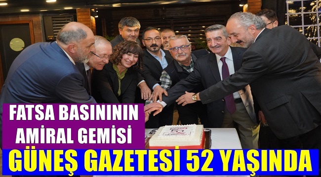 Güneş Gazetesi’nin Deniz Deniz Otel’de düzenlenen gecesine Fatsa’nın önde gelen isimleri katıldı. Gecede bir konuşmaya yapan gazetenin sahibi Feridun Altuntaş,” Fatsa’nın sorunlarının çözümüne katkı sunmak için kurulan Güneş Gazetesi siz sevgili okurlarının desteğiyle 52. Yaşını kutluyor. Emeği geçenlere teşekkür ediyorum” dedi.