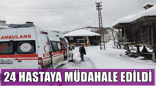 Kar yağışıyla birlikte cenaze bulunan 9 mahalle ve grup yoluna acil müdahale edilirken 24 hastanın ise hastanelere ulaşması sağlandı.