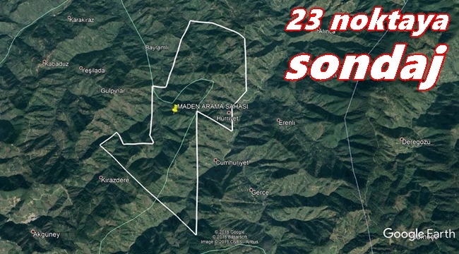 1389,67 hektarlık sahada Bakır-Kurşun-Çinko madeni araması için 23 noktada (70 m ile 410 m arasında değişen sondaj derinlikleri) sondaj yapılması planlanıyor.