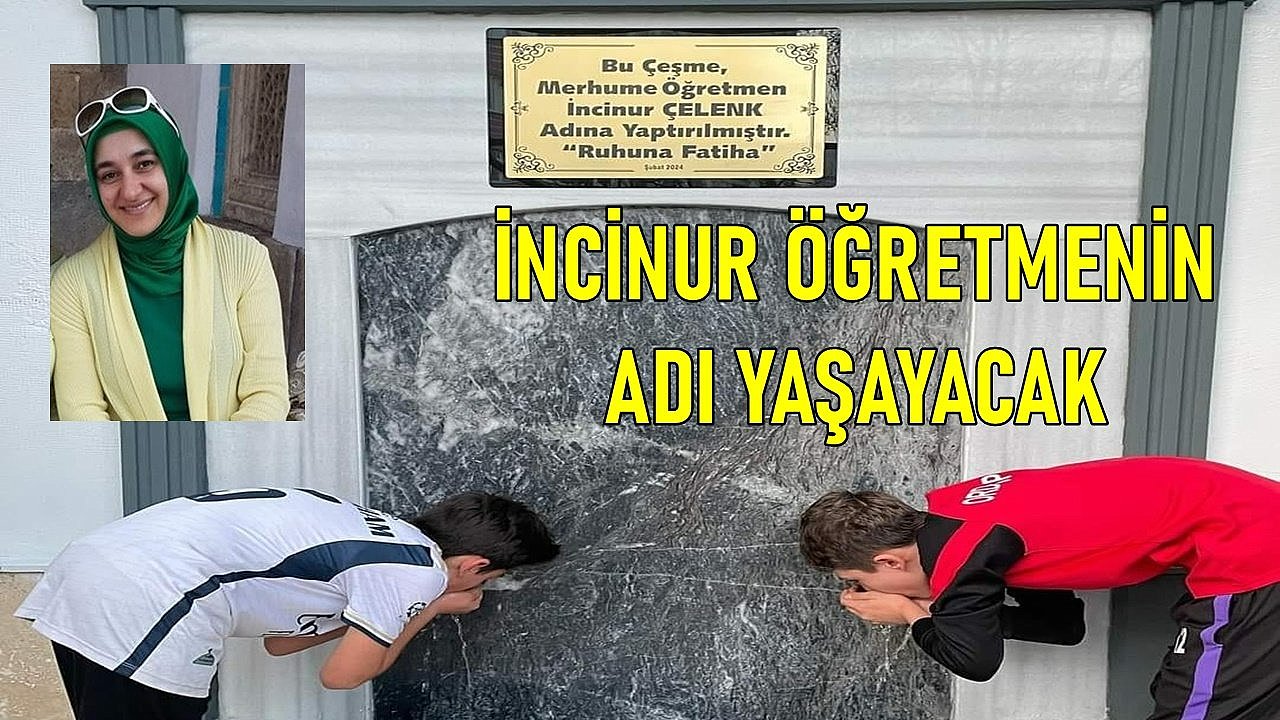 Çeşmenin duvarına, "Bu çeşme merhum öğretmen İncinur Çelenk adına yaptırılmıştır.Ruhuna Fatiha"