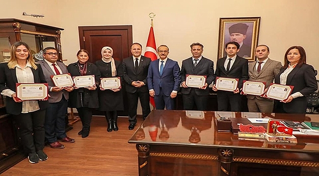 İl Millî Eğitim Müdürü Kutlu Tekin Baş başkanlığında, İl Millî Eğitim Şube Müdürü Tuncay Zorba, Müdürlüğe bağlı faaliyette bulunan Ordu Ölçme Değerlendirme Merkezinde görevli öğretmenler Ali Hatipoğlu, Tuğba Kaya, Gülnur Yılmaz ve Enes Başıbüyük ile Özel Büroda görev yapan İl Millî Eğitim Müdürlüğü DOKA Koordinatörü öğretmen Derya Akyol ve Şef Burçin Kahraman, Memur Mehmet Eray Duran Vali Seddar Yavuz tarafından “ Başarı Belgesi ” ile taltif edildi.