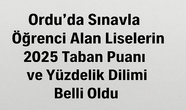 Milli Eğitim Bakanlığı, Liselere Geçiş Sistemi (LGS) kapsamında sınavla öğrenci alan okulların 2025 yılı yüzdelik dilimleri ve taban puanlarını açıkladı. Ordu’da geçen yıla göre birçok okulun yüzdelik dilimi ve taban puanında düşüş dikkat çekerken, zirvede değişiklik olmadı.