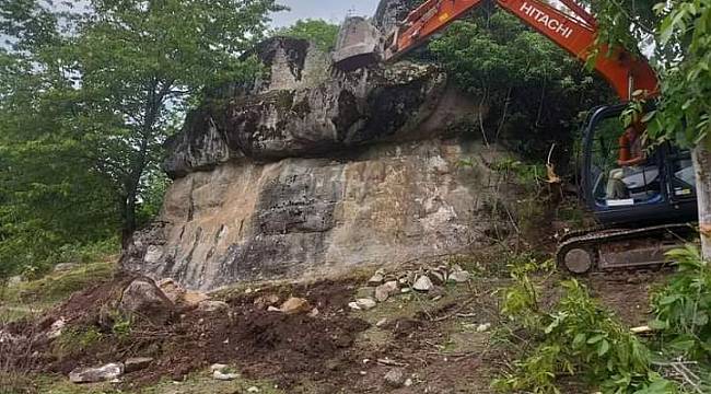 Ordu'da tehlikeli kayaya belediye müdahale etti